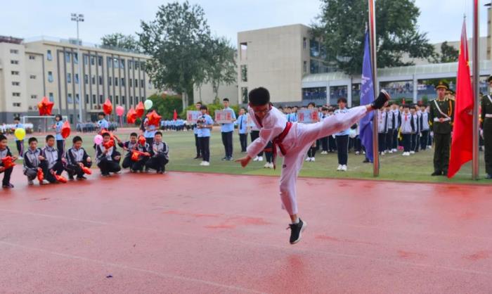 9月30日,石家庄二中西校区秋季田径运动会胜利召开。 学校中层以上领导及全校师生参加了开幕式。教育处刘建炜主任主持了仪式。