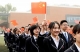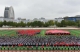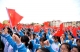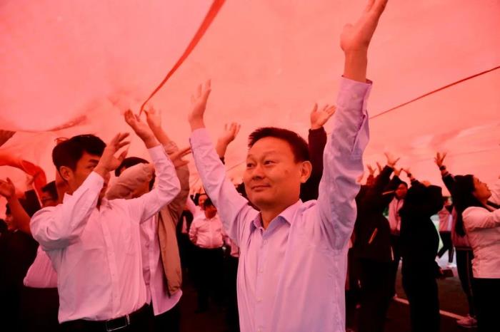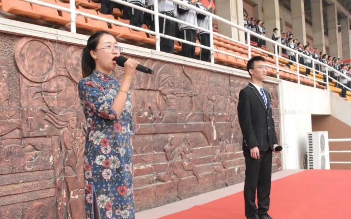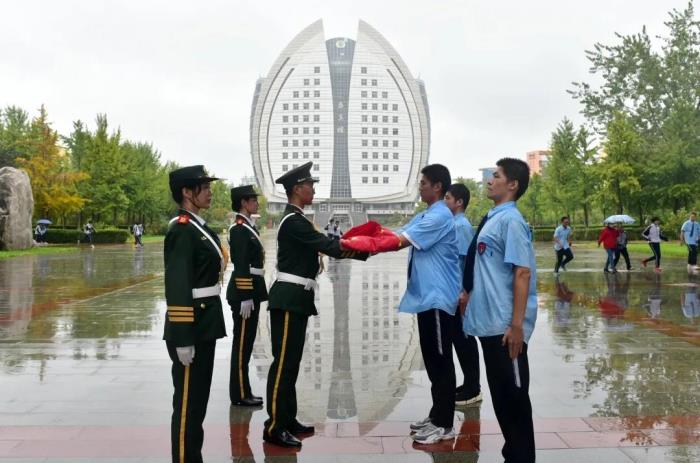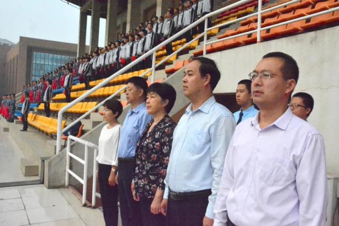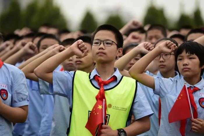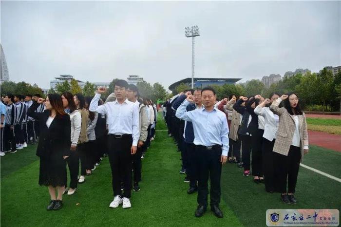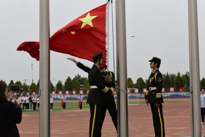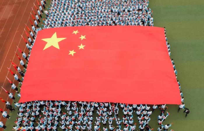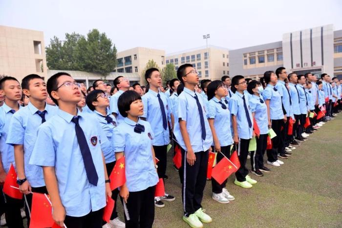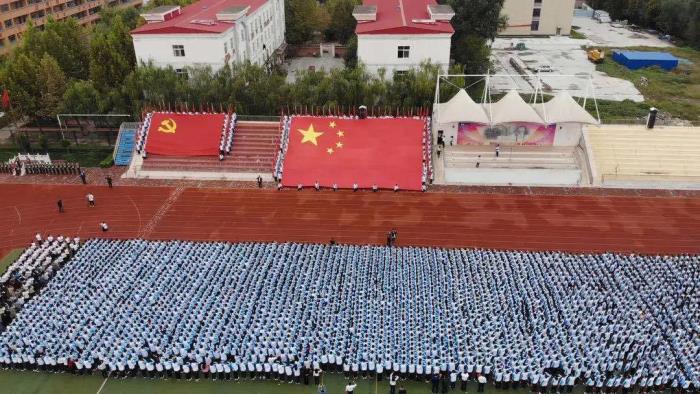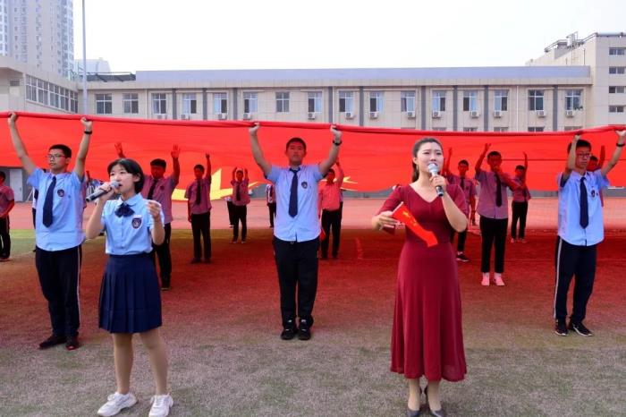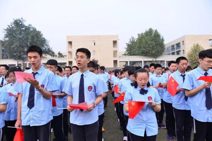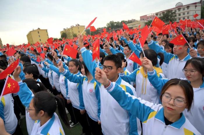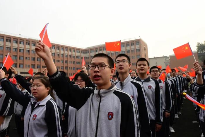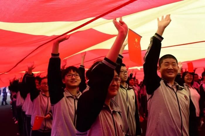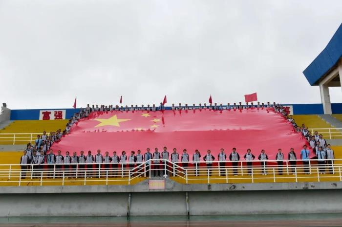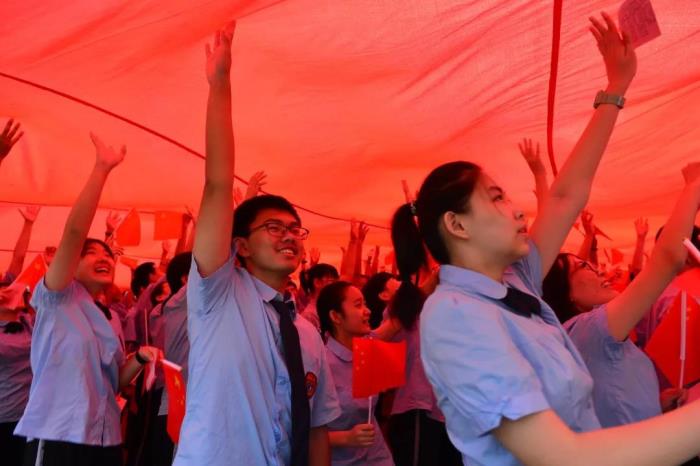 在巨幅国旗的见证下,南校区师生的豪言壮语响彻云霄