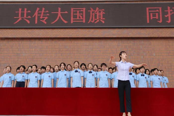 师生齐唱《我和我的祖国》,第一实验小学李梓垚同学领唱