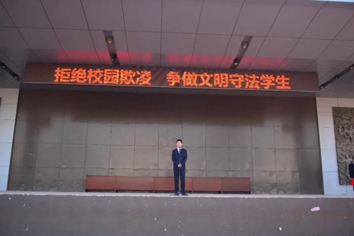 同学们,让我们从现在做起,加强法律学习,自我约束,改掉陋习,相互督促;用自己的实际行动拒绝校园欺凌,远离校园暴力,争做遵规守纪、文明守法的中学生,为创建文明和谐校园贡献出自己的一份力量!