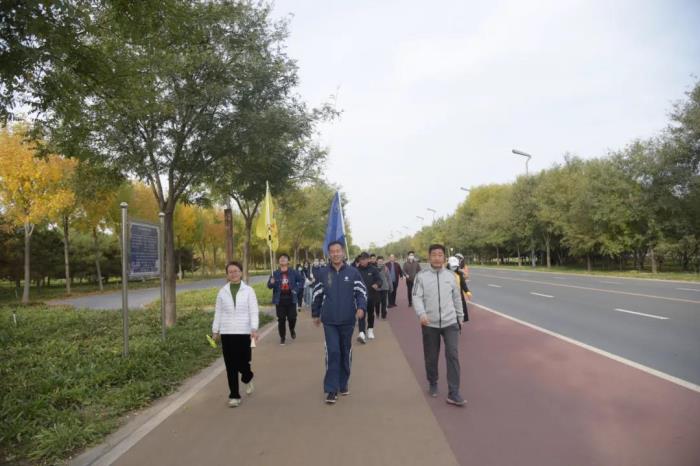 无边秋色尽妖娆,只此秋光胜春潮。伴随着飒爽的秋风,大家来到了叠翠流金的滹沱河生态园。孙福山校长就凝聚士气,鼓舞精神进行了简短讲话,随后带领大家沿生态园观景道路行进了五公里徒步活动,大家迈着矫健的步伐,一路沿河欣赏“秋水共长天一色”的风光,交流生活工作中的酸甜苦辣,也深深感受到了从历史深处奔涌而来的滹沱河文化。