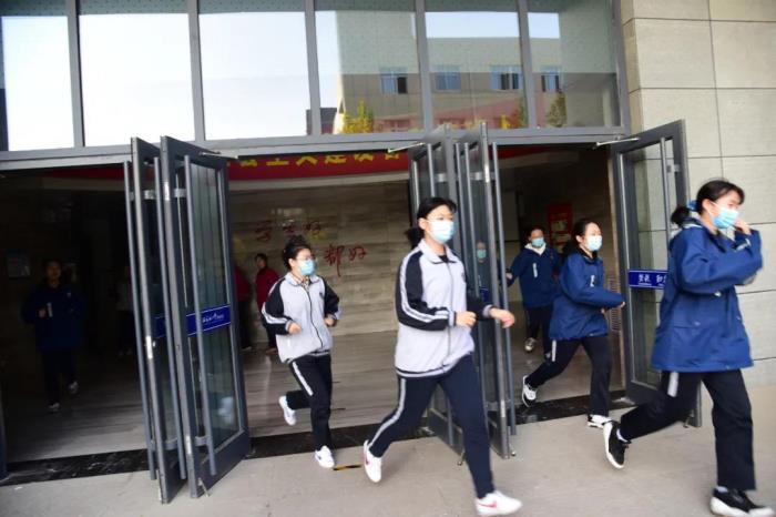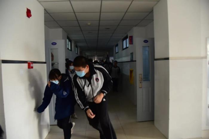 同学们按照指定路线进行疏散