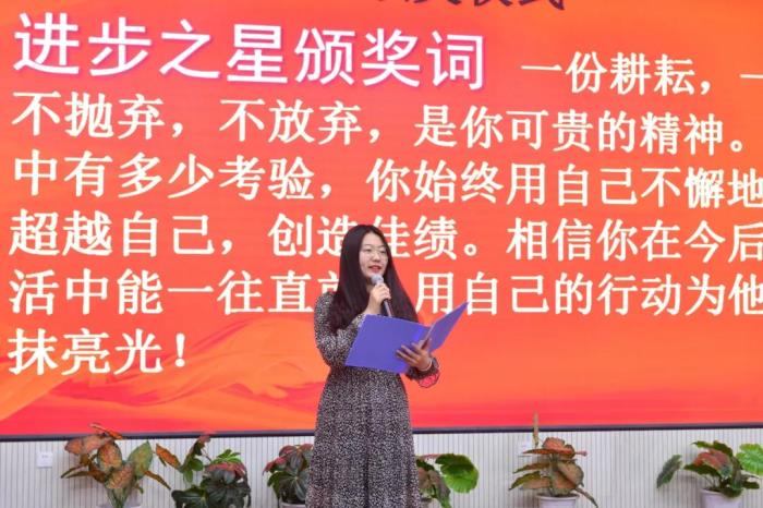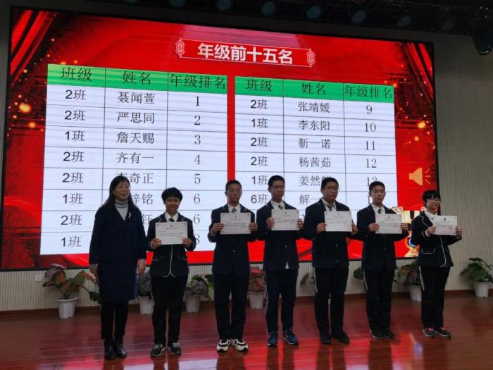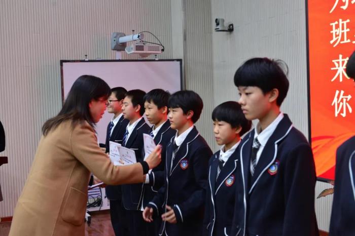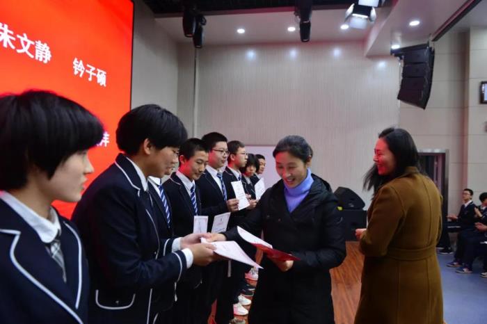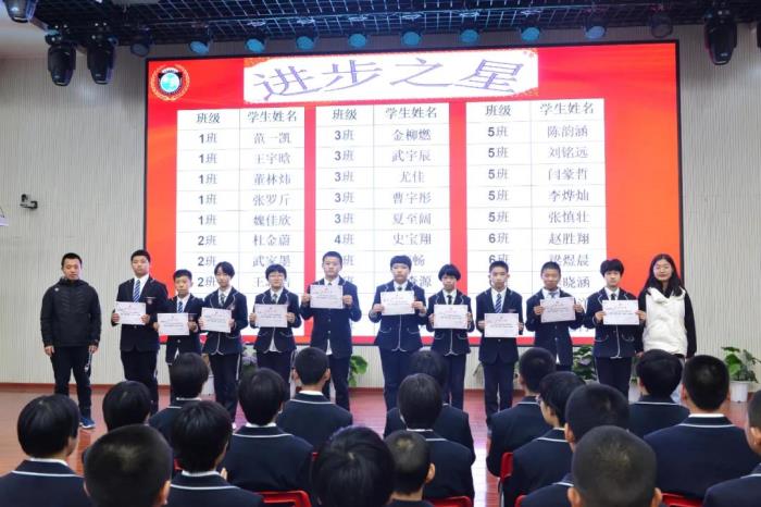 班主任与家委会代表为本次考试进步之星颁奖
