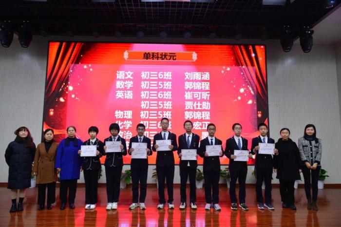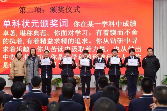 老师们为各科状元颁奖