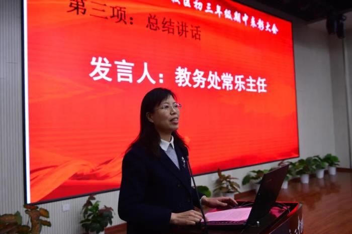 表彰活动的最后,教务处常乐主任在初三年级表彰会上总结讲话;史丽娜主任在初一、初二年级的表彰大会上总结讲话。两位主任对本次考试中获奖的同学表示祝贺,同时也给各位同学提出了新的要求,要求各位同学以优秀为榜样,制定新的学习目标。在接下来的冬三月里努力学习,争取创造新的辉煌!
