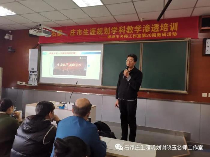 最后,石家庄教科所的景世群老师进行了专题讲座。他结合各学科的具体案例,从渗透目的、渗透原则、渗透方法等方面,对生涯规划与学科教学融合渗透做了详细的讲解,使听课老师受到了很大启发。