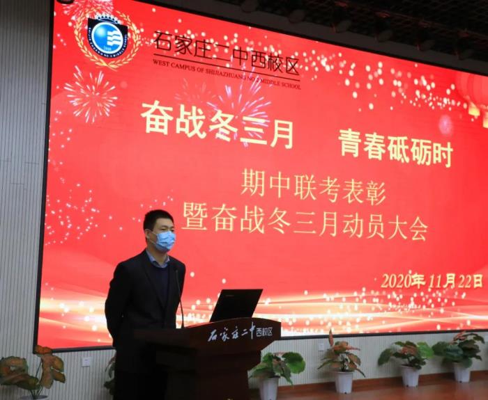 时光荏苒,转眼间学期已过半数,期中考试也落下帷幕。11月22日,石家庄二中西校区高中部高一、高二年级召开期中考试表彰大会。樊茹副校长、办公室田兴辉主任、教务处常乐主任、教育处刘建炜主任、校团委书记兼高一年级主任郝金亮,教育处副主任兼高二年级主任邢玉彬以及高一、高二全体学生参加了此次活动。