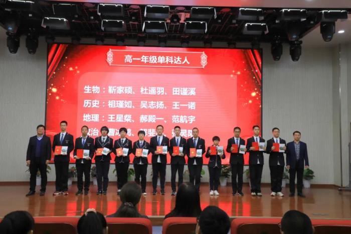 活动开始,表彰了在期中考试中表现优异的同学,包括总分前十名、单科达人、联考标兵、进步之星等等,学校领导为他们颁奖并合影留念,一起感受成功的喜悦。