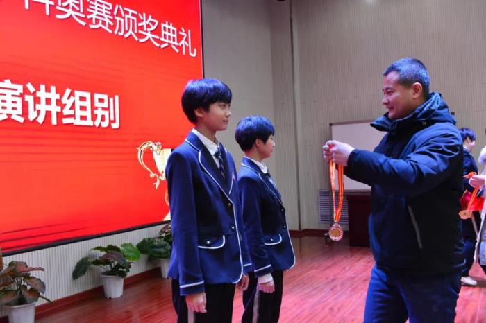 为班集体颁发“优秀组织奖”初一年级中文演讲金牌获奖者