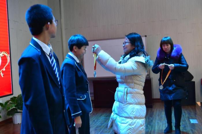 经过一上午的激烈角逐,全体参赛选手和老师、家长代表于11:20齐聚知源楼报告厅,共同见证榜样的诞生。大会举行了隆重的表彰仪式,鼓励优秀同学继续攀登学科高峰。