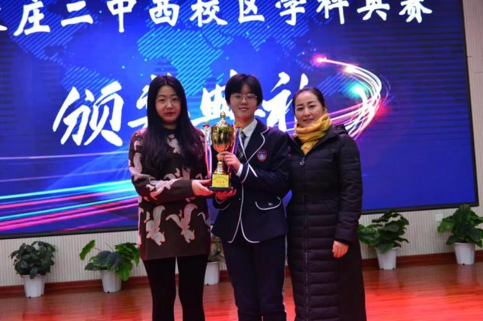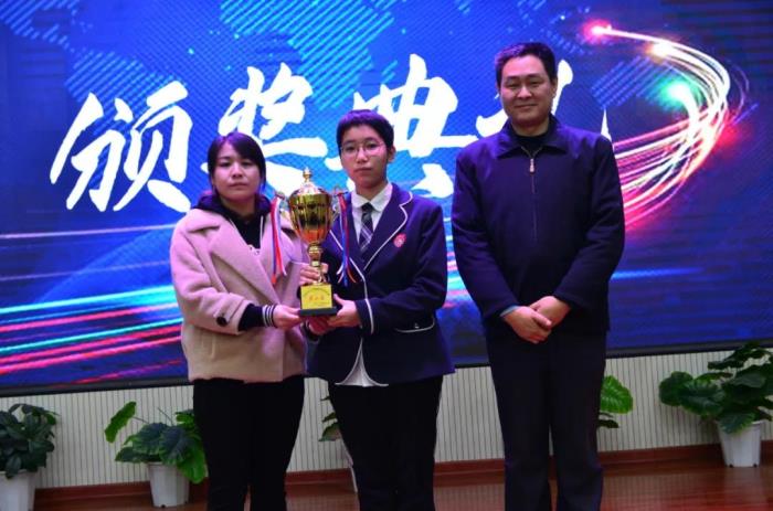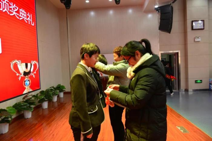 史丽娜主任为集体总分第三名班级颁发奖杯