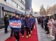 在老师们和家长们的掌声与祝福声中各支代表队高喊口号,昂首阔步迈上红毯,雄赳赳气昂昂走向赛场