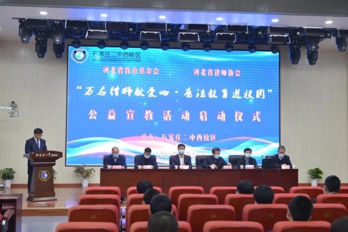 启动仪式由我校教育处主任刘建伟同志主持,参加会议的有河北省教育基金会会长袁彦昭、河北省教育基金会副会长兼秘书长王小民、河北省律师协会副秘书长张东山、二中西校区副校长张永泽、二中西校区校长助理顾庆龙、河北金隆律师事务所律师彭江民和我校部分学生代表。