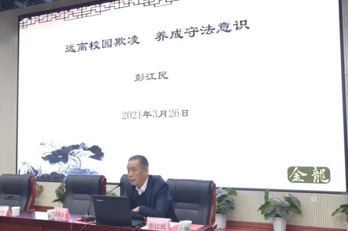 在启动仪式结束后,为防范校园欺凌、共建平安校园,河北金龙律师事务所彭江民律师结合学习《民法典》,并通过鲜活生动的法治案例,为我校师生们作了一场题为“抵制校园欺凌,做守法好学生”的专题法制讲座。