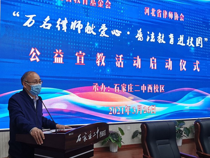 在第26个“全国中小学生安全教育日”即将来临之际,为深入开展法治宣传教育,扎实推进法治校园建设,由河北省教育基金会和河北省律师协会发起的“万名律师献爱心·普法教育进校园”公益宣教活动启动仪式,于3月26日在我校报告厅举行。