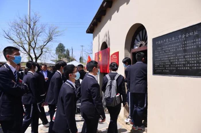 到达目的地后,师生沿着健身步道徒步登山,一路蜿蜒而上,同学们高唱《团结就是力量》等红色歌曲,情绪激昂。途经梁家沟,政治老师邢玉彬副主任为同学们讲述梁家沟村的历史,同学们感受到了在党的领导下乡村的巨大变化。来到西柏坡革命旧址后,师生们跟随讲解员逐一展室参观学习,重温“新中国从这里走来”的光辉历史。大家参观了老一辈革命先烈的旧居,中共七届二中全会旧址和西柏坡纪念馆,回顾了毛主席和党中央在此指挥著名的三大战役、召开七届二中全会、解放全中国的波澜壮阔的历史,学习了毛泽东同志在西柏坡向全党发出“两个务必”的号召,深刻认识弘扬西柏坡精神在实现中华民族的伟大复兴的历史进程中的重要意义。
