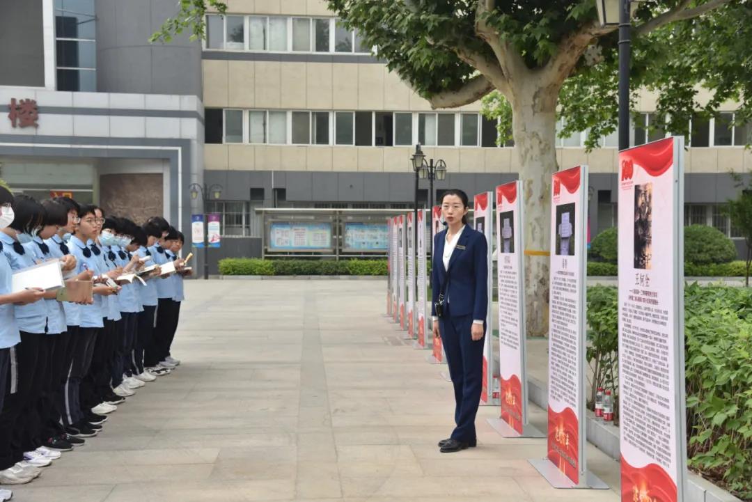 为迎接中国共产党成立100周年,缅怀在争取民族独立和自由过程中英勇献身的英烈,弘扬民族精神。5月14日,我校特邀华北军区烈士陵园来我校进行红色文化主题展览活动,初二年级学生参加了本次活动。