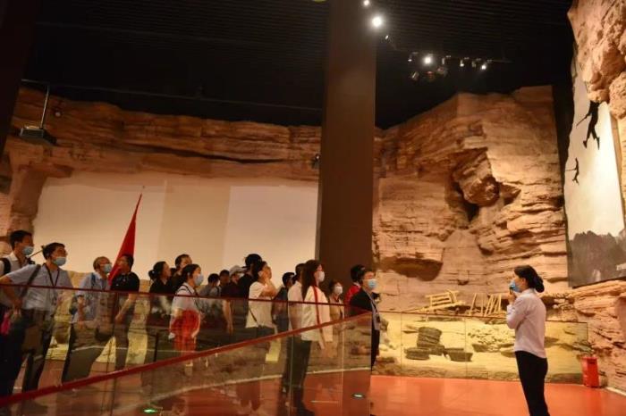 在研学活动的第一站,我校党员职工参观了红旗渠纪念馆、分水闸,感受到开山建渠的不易。随后,全体党员同志坐大巴到最典型的开渠洞口——青年洞。抵达洞口后,党员教师在张永泽副校长带领下,重温入党誓词。每位党员同志都被红旗渠“自力更生,艰苦创业,团结协作,无私奉献”的十六字精神所感动折服。红旗渠精神体现了党领导人民群众不惧艰险、迎难而上、战天斗地、艰苦奋斗的时代精神,对开展好当下的党史学习教育有重大意义。在新的历史征程中,红旗渠精神依然是鼓舞我们艰苦奋斗、开拓进取的强大精神动力。