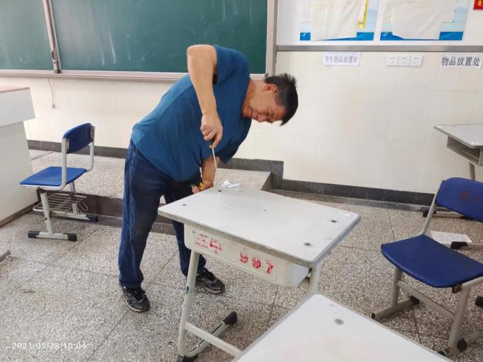 我校总务处积极行动,筹备物资、检修设备,近日对桌椅、电灯、电扇等进行了检修,并准备加装空调,后勤维修师傅随时待命,做好各项后勤保障工作,以确保考务工作的万无一失。