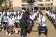 学校全体领导、老师、家长和同学们一起齐聚校园
