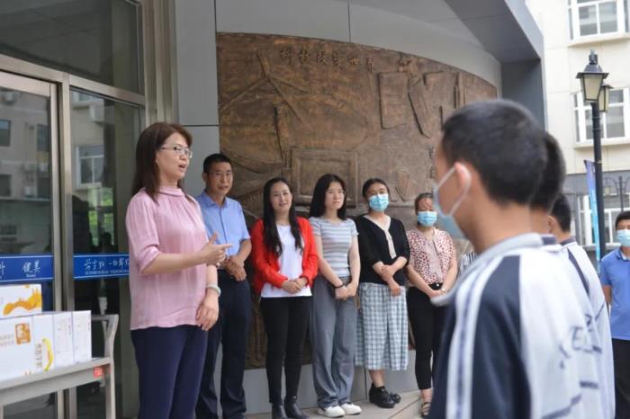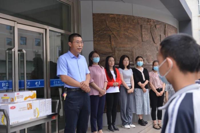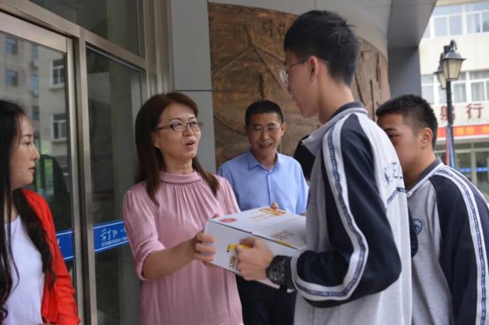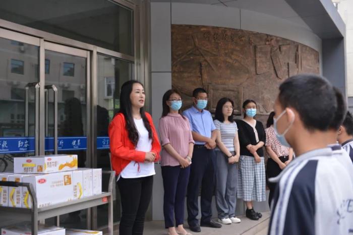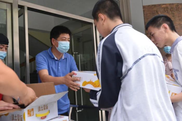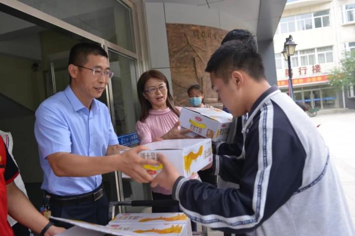 中考即将到来,为助力中考学子,传递爱心与祝福,二中西校区学校食堂启动了为期一周的 “加餐送祝福”活动,为中考学子送去年糕、粽子、牛奶、面包、水果等祝福礼。教学副校长樊茹、总务副校长张尚英、初三年级主任史丽娜、总务主任王成、总务副主任王志泉及食堂负责人等参加本次活动启动仪式,共同祝愿中考学子蟾宫折桂,冲上巅峰!
