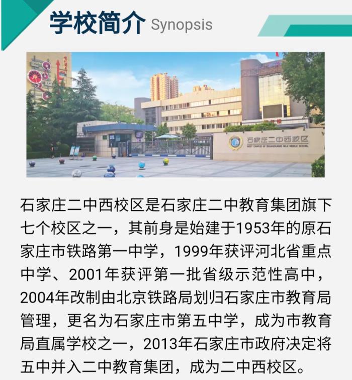 | 地址: | 石家庄二中西校区位于石家庄市新华区水源街109号 乘坐11、75、68路公交车到合作路东口站下车即到。 |