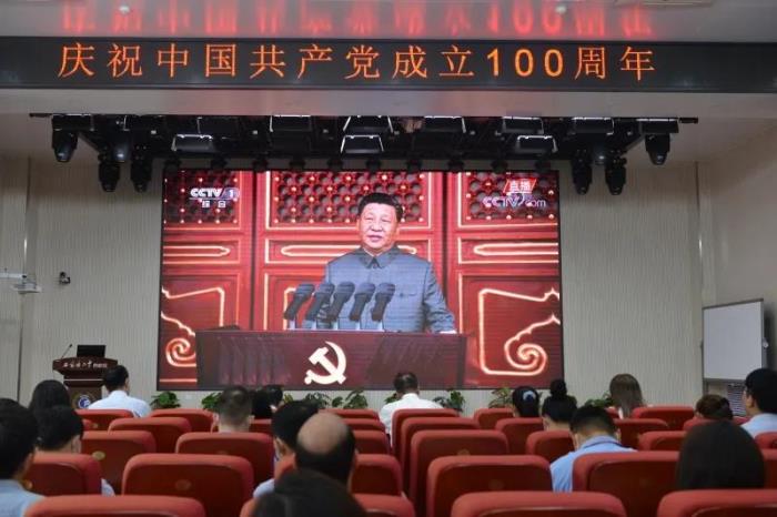 7月1日上午,庆祝中国共产党成立100周年大会在北京天安门广场隆重举行。我校党员在报告厅集体观看大会直播,聆听习近平总书记在大会上的重要讲话,心潮澎湃,倍感鼓舞。大家一致认为,这次大会是对我校党员干部精神的一次洗礼,通过收看直播,大家进一步坚定了跟党走的信心和决心。