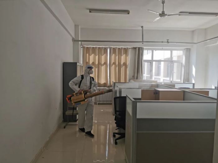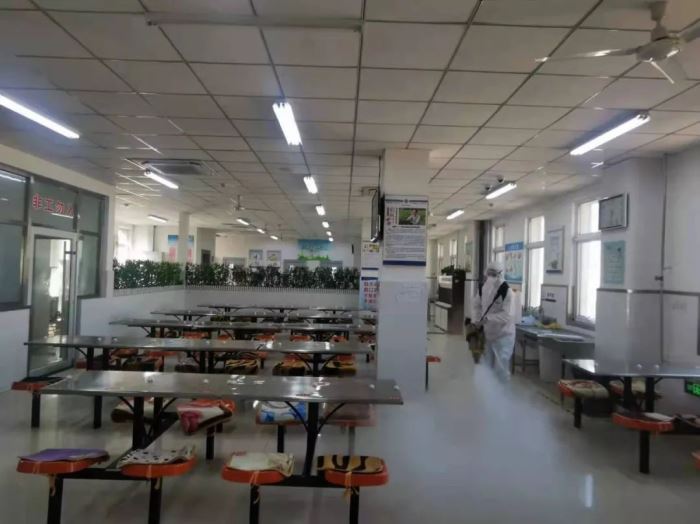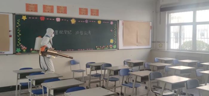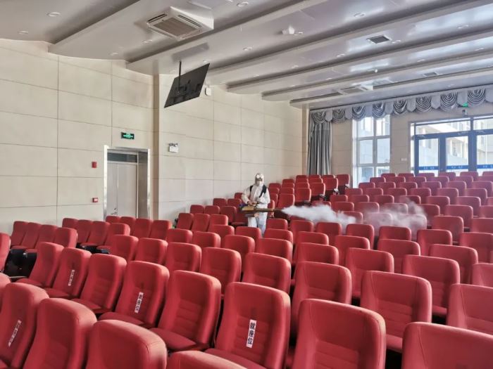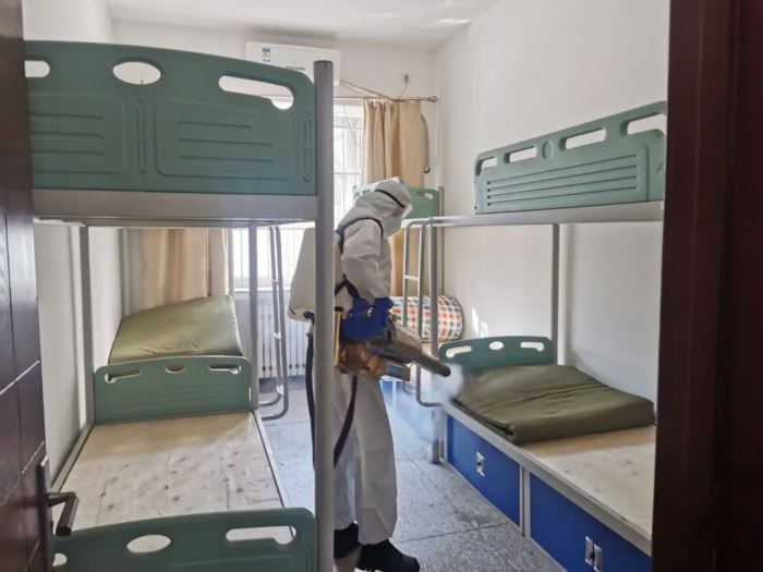 开学报到前各年级、宿舍管理员全面打扫卫生、消毒。总务处安排人员开学前对学校公共区域、场馆等进行全面消杀,各年级教室待卫生清整后进行全面消杀,开学前3天保障消杀到位。