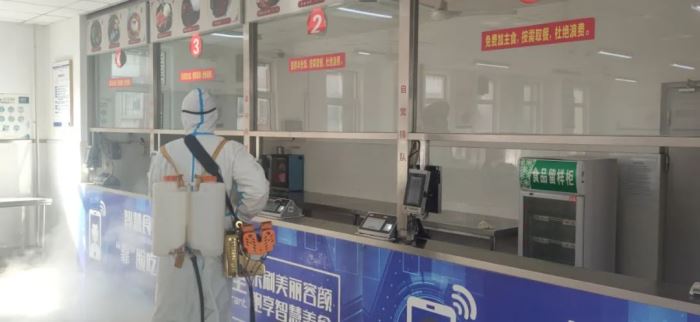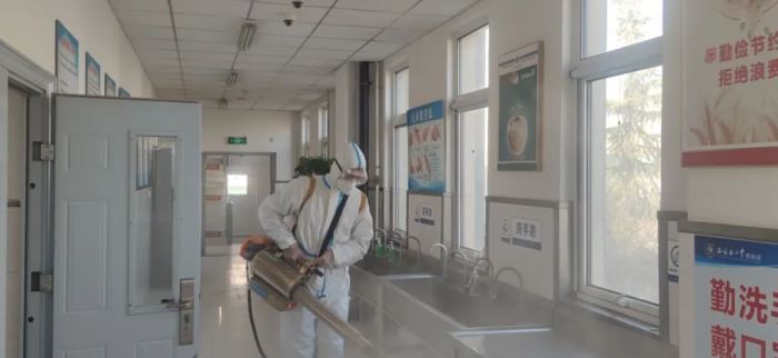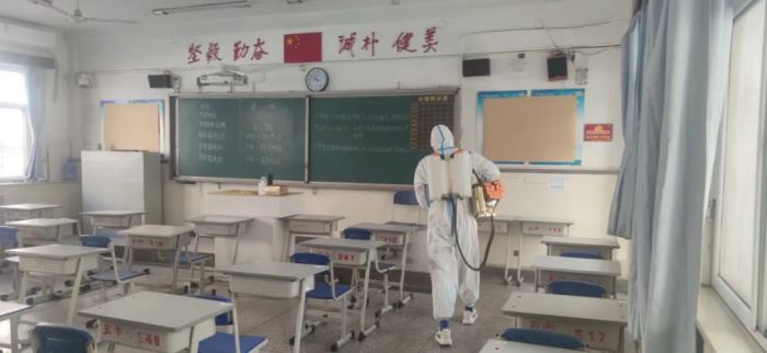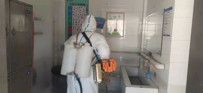 春光明媚,洒扫庭除,“净”待学子归来!——二中西进行校园全面消杀工作
