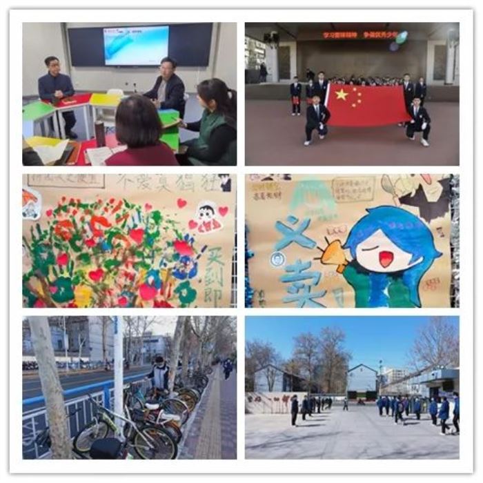 教育科:班主任论坛、升旗仪式、爱心义卖海报、值周同学摆放车辆、自主进校管理