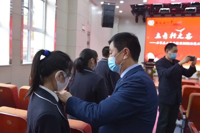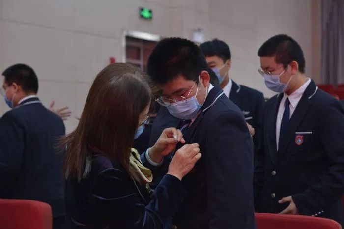 同学们,带上成人徽章的我们,应深切感受到自己不再是个孩子。十八岁表明我们已经成为社会的“主人”,肩负起家庭幸福、社会发展、国家富强的责任和使命!同学们一起重温宪法,庄严宣誓。