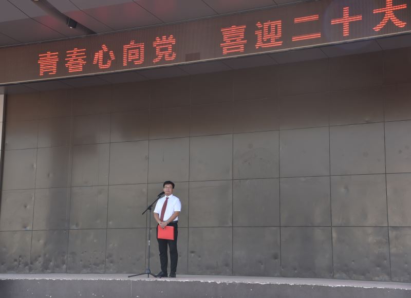 学生会副主席李翊菲同学做了热情洋溢的旗下演讲,激励同学们怀一颗报国赤子之心,树立远大理想,不懈地奋斗,青春献祖国,,高举爱国火炬,在复兴的壮阔征程激扬青春力量,以青春之我、奋斗之我,学有所成、奉献社会、服务人民,创造出无愧于时代的青春业绩!
