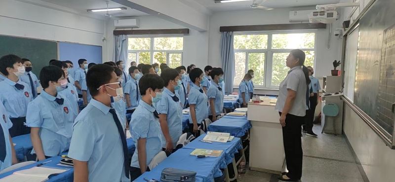 周一上午九点半,二中西校区的绿茵场就变成了红色海洋,学校领导及高一年级全体新生分列操场,其他学生及老师在线上参加巨幅国旗传递仪式。在《歌唱祖国》的歌声中,19米长的巨幅国旗由学生高高擎起,从头顶掠过,国旗所至,学生们张开双臂轻轻推举,胸中激荡着心潮,脸上洋溢着笑容,他们用这种方式表达自己对祖国、对国旗的崇敬之情。