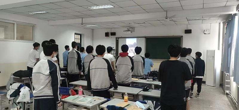 随后,举行升旗仪式,操场上、教室里国歌嘹亮,全体师生向祖国诉说心中的深情。