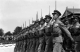1950年国庆受阅步兵方阵,受阅官兵身着黄绿色50式军服,昂首挺胸齐步通过天安门广场