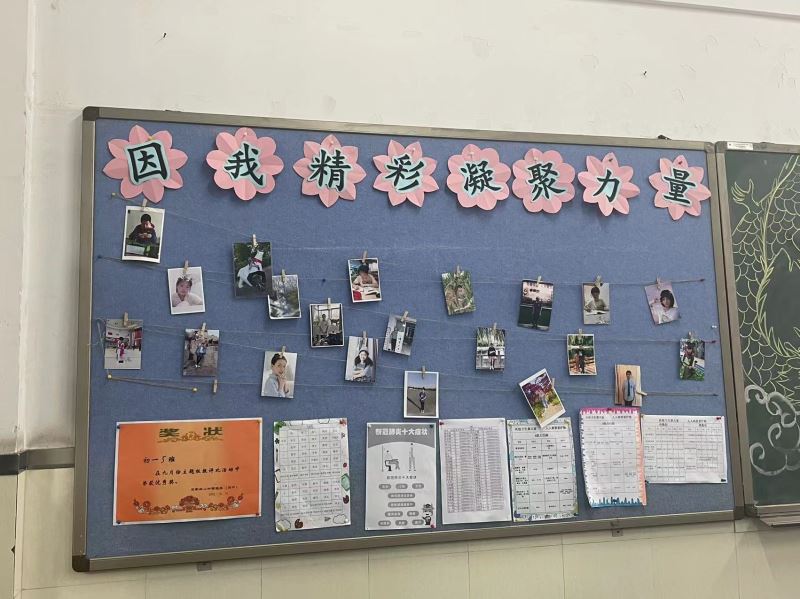 近期,初一年级各班进行了班级文化的设计,同学们充分利用黑板报、软板设计和书画展示等形式,大多围绕爱国、劝学、励志等主题展开,还有一些为实用小技巧。软板设计各不相同,各班尽展风才,有关于绘画展示的,还有展示学生风采的照片墙,精心布置,创意无限。