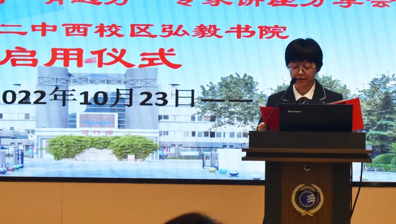 秋天的校园,是灿烂的、 成熟的、同时也是充满收获的。10月23日上午,石家庄二中西校区隆重举行 “阅读让成长更精彩”专家读书分享会暨弘毅书院启用仪式,活动通过现场和线上网络直播相结合的形式进行,此次特别邀请到了 人民网河北分公司副总经理杨伟华、 河北省教育科学研究院义务教育研究室主任李学红、 河北广播电视台主持人、主任播音员 任滟俐、 文化学者•诗人书家王律等知名专家做精彩分享, 另有河北广播电视台少儿科教频道副总监李遐、河北广播电视台少儿科教频道《国风少年》节目组负责人聂伊凡、河北省茶艺师协会会长郭耿珠、石家庄第一实验幼儿园徐书莉主任 等嘉宾莅 临参会。