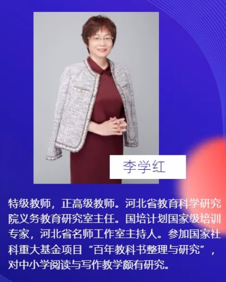 河北省教育科学研究院义务教育研究室主任李学红老师分享:《享受“越”读之美》。