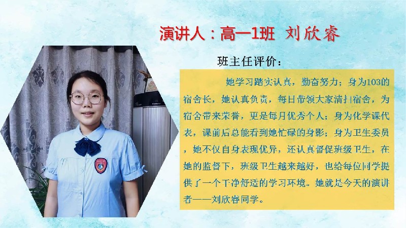 高一1班刘欣睿同学升旗演讲