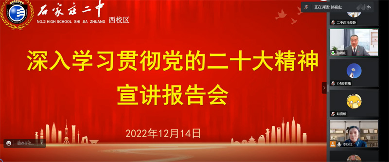 ——石家庄二中西校区组织学习党的二十大精神线上宣讲报告会