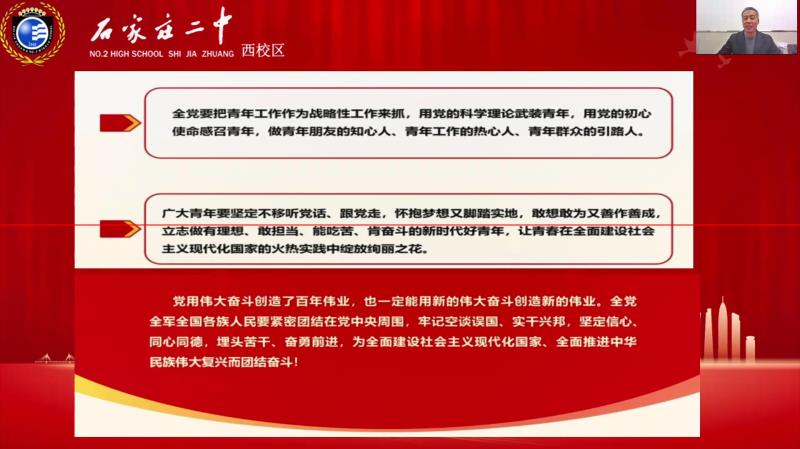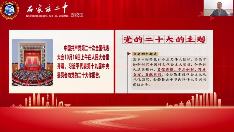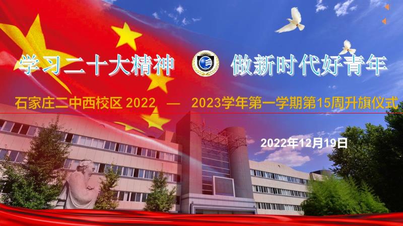 14日我校特邀市委走基层校园宣讲团成员、石家庄信息工程职业学院马克思学院副院长李秋红教授为师生做了一场线上宣讲报告会,反响热烈。今天升旗仪式上 孙福山校长带领全体师生再一次深入学习了党的二十大精神,勉励同学们 要以党的二十大精神为指引,怀抱梦想,脚踏实地,坚定不移成为一名有理想、敢担当、能吃苦、肯奋斗的新时代好青年,用实际行动展现青春力量。