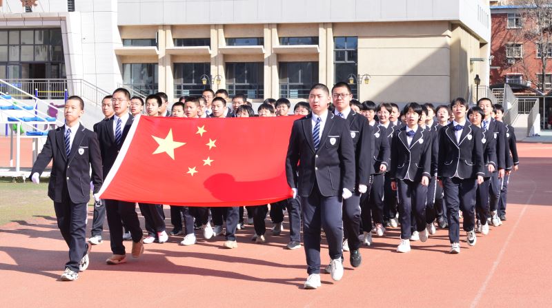 本次升旗手由孙庆 梁浩嘉 王子晨 康益郡四位同学担任。