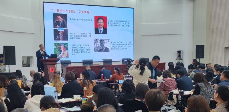 孙福山校长以”铸就引领的本领“为题,结合二中西校区的学校管理实践,通过案例分享与策略分析,提出校长在办学思想指引下要构建一种师生认同的价值文化、一套科学合理的制度规则和一个比较完备的组织框架;要肩负起学校发展的使命,确立教师第一的理念。并结合自己每日随笔心得,从学校有愿景、管理重温度、发展建平台、考核求公平、关系创和谐、家校聚合力、子弟长无忧、健康有保障等八个方面,系统阐释了提升教师生命幸福力的管理理念;提出由问题意识、项目驱动、闭环管理、清单革命、点位思维、数据支撑、拉练督导、持久为功八项效能管理工具建构关系质量管理思维模型;通过阅读与写作激发起终身学习的状态。
