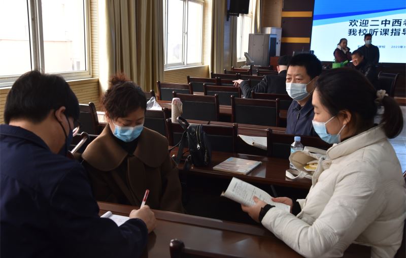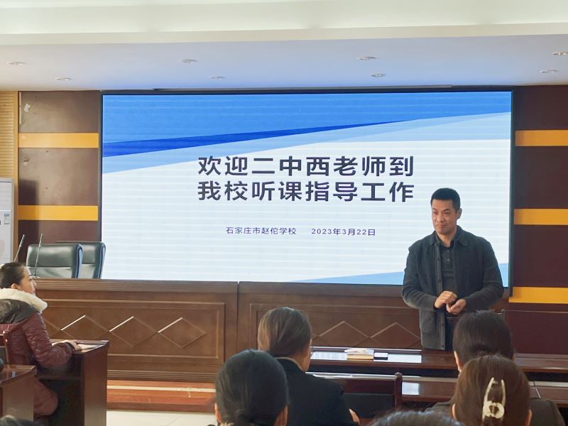 3月22日石家庄二中西校区初一、初二年级七个学科备课组长由初中部史丽娜主任带队共15位教师前往新华区赵佗中学开展听课交流活动,赵佗中学王文君校长、主管教学高积丰副校长等领导带领教师热情迎接。