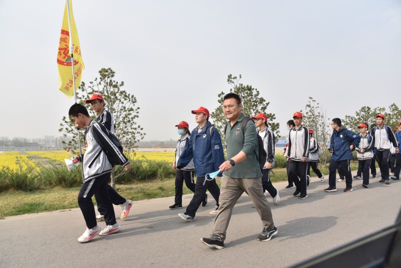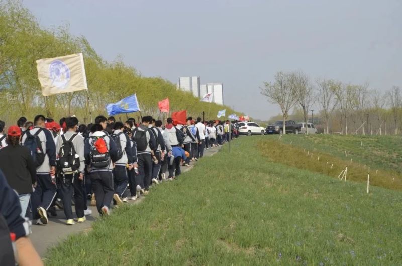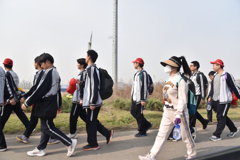 早7点在学校操场,简短启动仪式后,师生集体乘车开赴远足活动起点:滹沱河畔,由此阔步踏上研学征程。