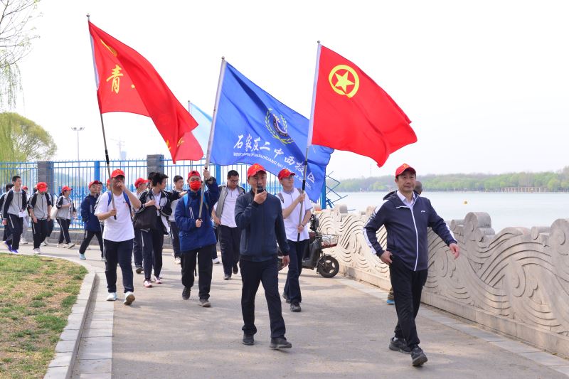 春风送暖,阳光灿烂。4月1日,石家庄二中西校区开展了远足研学实践活动。今年恰逢建校七十周年,作为庆祝系列活动之一,为让学生在磨难与艰辛中体验长征精神,培养团队合作意识,收获成功、收获友情、收获自信、磨砺心志。精心设计安排了5个主题研学站点:生态滹沱、希冀之光、奋楫扬帆、铁路情缘、梦想力量,籍此让同学们树立绿色生态发展理念、了解河北、石家庄在新中国成立史上的重要作用、学习领悟党的二十大精神、学习校史为建校70周年献礼。主题鲜明,寓学于游,寓学于史,寓学于山水之间。