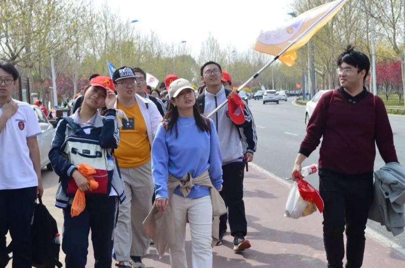 行进途中,张永泽副校长走在队伍的最前面。老师们始终与同学们一路相伴左右,精心服务