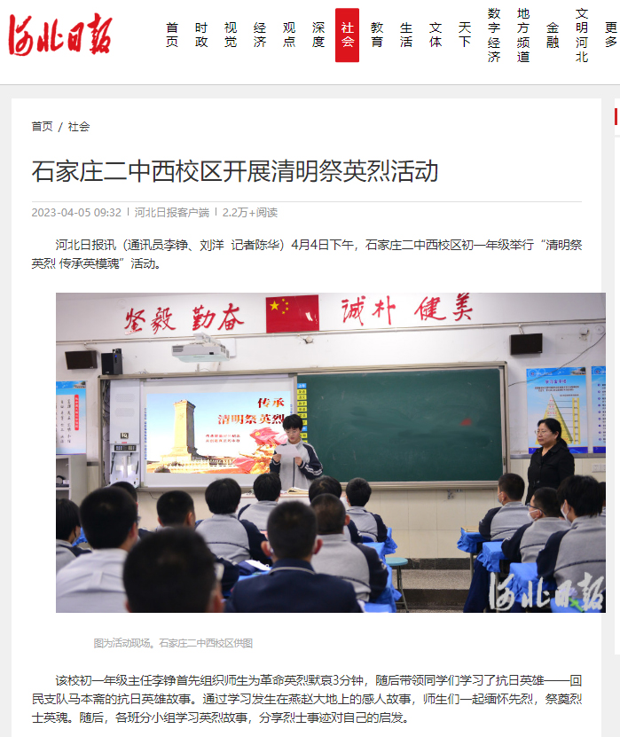 清明祭英烈 传承英模魂——石家庄二中西校区开展清明祭英烈活动 (sjzdaily.com.cn)