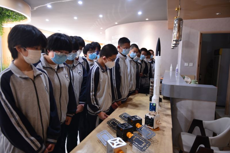 在室外展区,同学们还兴趣勃勃地参观了海洋卫星、宇宙返回舱、“长征”系列运载火箭等实物模型,在感叹我国航天事业的辉煌发展同时倍感自豪和骄傲。