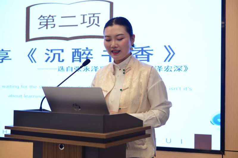 随后教育科杨雅杰老师声情并茂地朗读张校长著作《教泽宏深》之《沉醉书香》片段,令在场所有人沉醉其中。